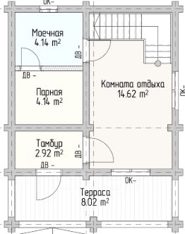 1 этаж - просторная кухня-гостиная, настоящая русская баня