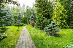 Благоустройство участка: выполнен ландшафтный проект с элементами паркового и лесного дизайна. У дома высажен газон, участок украшают композиции из декоративных кустарников и деревьев, клумбы и цветники. Дорожки выложены брусчаткой с декоративными бордюрами и премиальной тротуарной плиткой Kamrock. Пространство дополнено скамейками и системой освещения. По периметру участка проходит дренажная система.