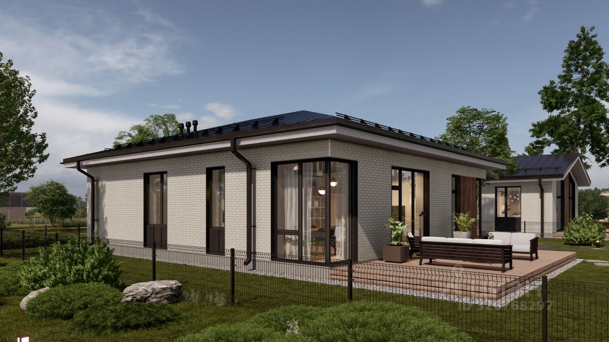 Удобный одноэтажный дом 107 м2 с 4 спальнями и угловыми окнами.