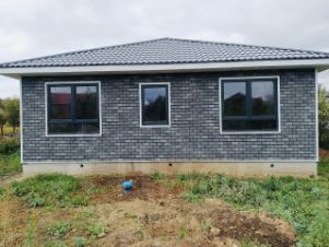 Продуманная планировка дома включает в себя три отдельные комнаты, просторную кухню, уютную гостиную и функциональный санузел.