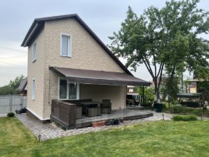 Дом, белый качественный кирпич. Оббит сайдингом в июне месяце этого года.