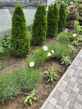 Посажены новые плодовые деревья,ягоды и красивые цветы.Очень вкусные две яблони.