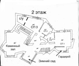 2 этаж : 3 спальни , 2 санузла,бар, зимний сад,каминный зал.