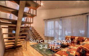 3 этаж: Лофт(зал + мансарда),спальня, джакузи , санузел, зал с лестницей на мансарду где еще 2 комнаты .