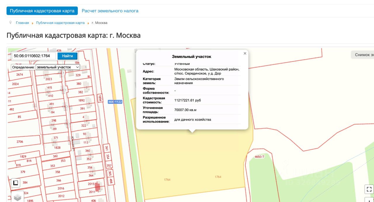 Точный адрес по кадастру Московская область, Шаховской район, с/пос. Серединское, у д. Дор