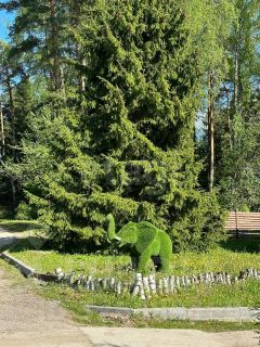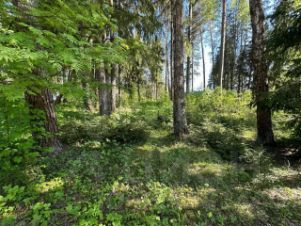 На участке вековые сосны и ели.