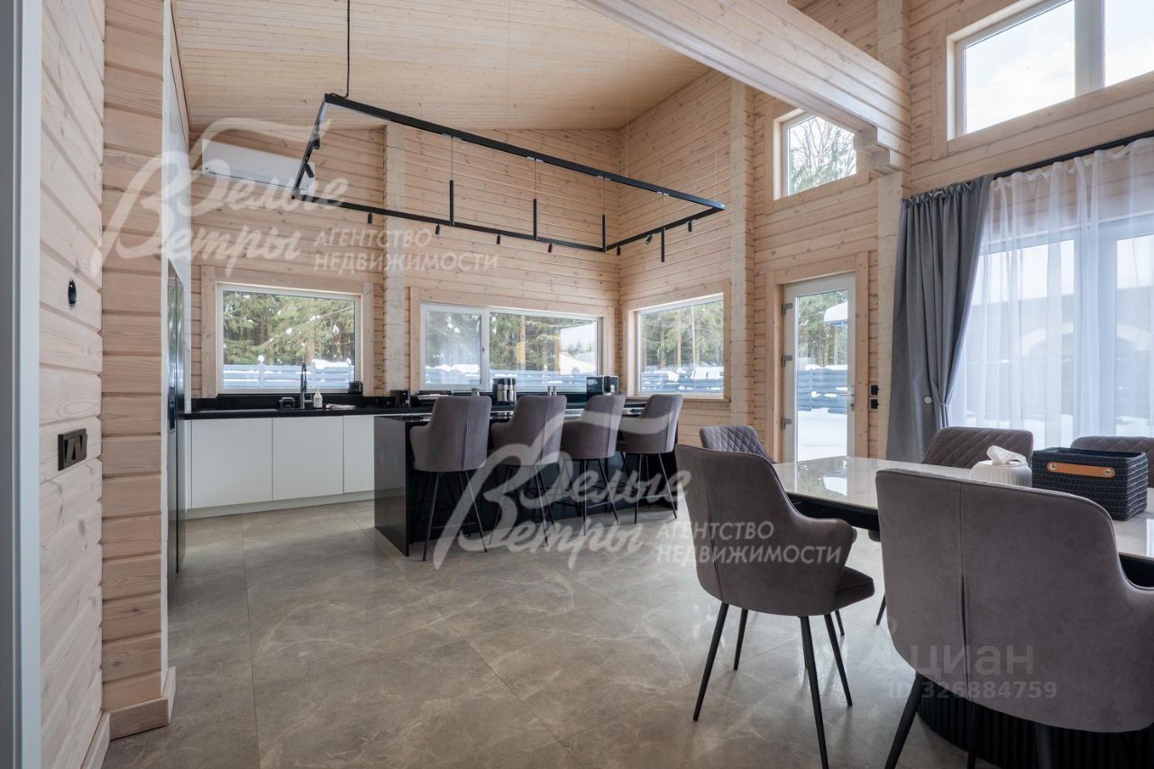 Мебель, оборудование: дом полностью оснащён новой мебелью и всей необходимой бытовой техникой. На кухне установлен гарнитур производства "EGGER" (Белоруссия) с фурнитурой Blum; столешница и кухонный остров, выполненные из кварцевого агломерата; встроена техника Weissgauff (духовой шкаф, индукционная варочная панель, посудомоечная машина, двухдверный холодильник шириной 90 см со лёдогенератором, подключённым к водопроводу, микроволновая печь, винный шкаф; большой обеденный стол. В гостиной размещена диванная группа и телевизор с акустической системой. В спальнях качественные мебельные гарнитуры, в мастер спальне телевизор с подключением к антенне и голосовым помощником Алиса. Постирочная оборудована стиральной и сушильной машинами. Во всех помещениях смонтированы карнизы с дорогостоящими шторами. Освещение представлено разнообразными приборами: потолочными люстрами, настенными бра и встроенными светильниками. В санузлах немецкая сантехника: смесители Allen Brau и Grohe, а также санфаянс высокого качества.