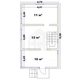 Планировка:1 этаж: Прихожая, две смежные комнаты (13 и 11 кв. м.). Высота потолков 2.8 м.