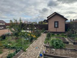 На участке 17м x 32м. расположен дом, сарай, курятник.