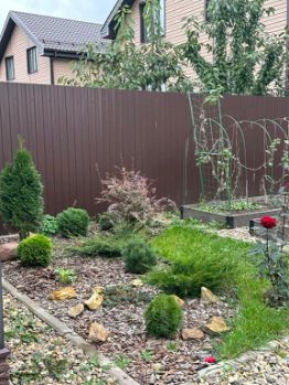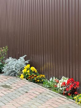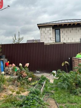 Забор:Евроштакетник 0, 5 сталь, въездные ворота с калиткой, участок огорожен забором из профнастила 0, 45 сталь.