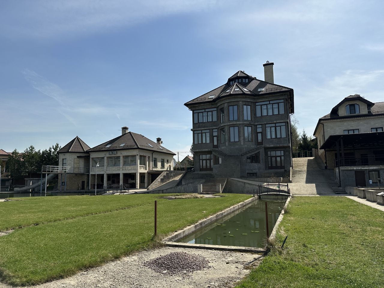 С другой стороны дома на берегу пруда находится 3х этажный банный комплекс (общая площадь 320 кв.м).