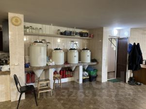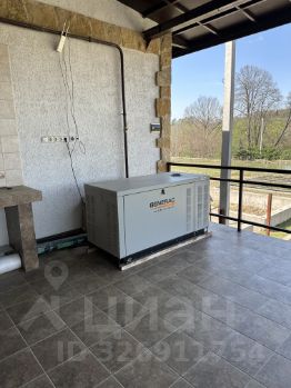На цокольном этаже большое помещение с автоматическими гаражными воротами с заездом со двора возможно размещение 2 автомобилей, имеются промышленные холодильная и морозильная комнаты по 6 кв.м. К цокольному этажу присоединена обширная крытая терраса с газовой плитой, раковиной и автономной самоподключающейся электростанцией, мощностью 27 кВт, работающей на природном газе.