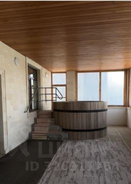 На 1 этаже расположена веранда с джакузи в форме бочки диаметром 2 м, комната отдыха на сене, внутри баня состоящая: из раздевалки; комнаты отдыха с 3 лежаками и ТВ (стены и потолок отделаны кедром); помывочная комната с подогреваемой лавкой, с 2мя душевыми кабинками с тропическим душем, ведром-перевертышем; парилка (12 кв.м.) с русской печью, в которой огонь проходит сквозь камни (красный кварцит), топится 5 часов, благодаря чему жар сохраняется 3е суток. Также в бане находится топочная для печки бани с отдельным входом с улицы.