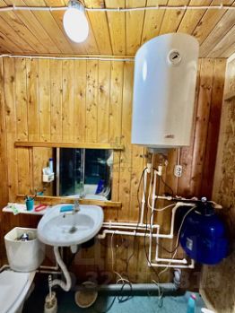 Коммуникации: электричество (однофазное, 5 кВт/220В, тариф: день/ночь); вода: колодец (3 кольца) заведена в дом; канализация: переливной септик из ж/б колец, отопление печное. Установлен бойлер для подогрева воды. Подключен интернет.