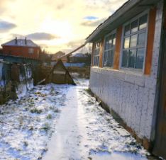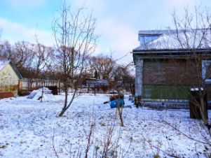 Дом расположен на участке в 10,7 сотки, окружен с двух сторон землей, где можно поставить еще один дом. Во дворе дома, высажен сад: растут яблони, слива, груша, калина, рябина. Окна выходят в сад, что располагает релаксу и созерцанию природы.