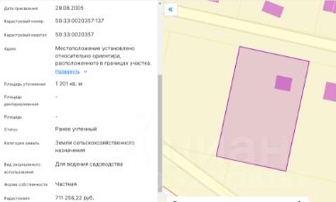 - Участок площадь 12 соток, вид разрешённого использования: для ведения садоводства (50:33:0020357:137);
