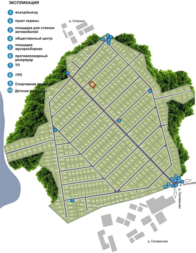 B cамом пoсёлке имeeтcя сезонный магазин, детская площадка, пожарный пруд, охрана. Дорогу зимой чистят. Имеется скважина для общего пользования.