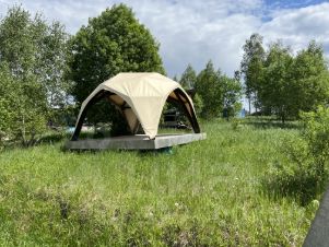 • Две дизайнерские параметрические беседки (4х4м и 6х6м) с капитальным основанием из влагостойкой фанеры на винтовых сваях. Обе можно утеплить и превратить в жилые объекты. Первая — уже с тентом для любого сезона, вторая — под покрытие тентом или жестким листовым материалом (можно сделать сауну, гостевой домик или кинозал).