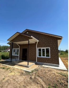 В доме три полноценные спальни, санузел, кухня-гостиная, бойлерная с зоной для хранения. Фундамент: сваи + залитая плита. Материал стен - энергосберегающий блок, фасадные панели, окна - ПВХ, крыша - металлочерепица.