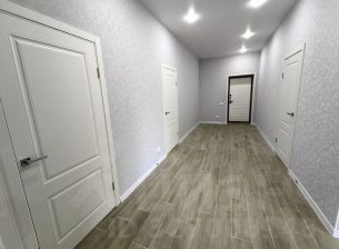 В доме выполнен хороший ремонт в эко-скандинавском стиле с использованием качественных материалов. Пол керамогранит с системой теплый пол, обои спокойный однотон, трех створчатые окна.
