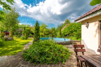 Основной 3-х уровневый дом (2 этажа и цокольный уровень) с удобной планировкой — изолированными комнатами, просторной светлой гостиной и уютной функциональной кухней. Много окон и света, терраса на втором этаже. Просторные удобные гардеробные и теплые полы, 4 отдельные полноценные спальни дают возможность уединения.