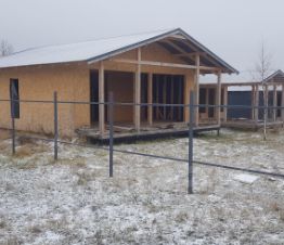 на участке каркас дома 9х13, 117м2 и каркас бани с верандой 4х9
