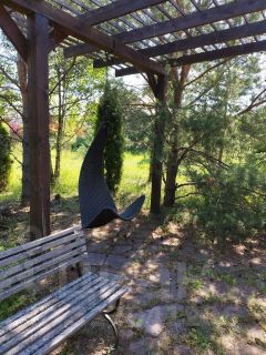 На участке расположены два дополнительных строения (хозблоки или гостевые домики), которые можно использовать под мастерскую, склад инвентаря или размещение гостей. Также имеется открытый гараж (парковка) для авто.