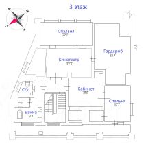 Третий этаж: 2 спальни, большая гардеробная комната, кинотеатр, кабинет, с/у с большой ванной комнатой.
