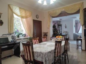 -полы: плитка в холлах 1-го и 2-го этажей, на лестнице, в постирочной, котельной, в кухне и санузлах; в комнатах- ламинат и паркетная доска.