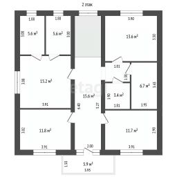 - На втором этаже: мастер-спальня с отдельной гардеробной и санузлом, три просторные спальни и общий санузел, гардеробная, большой холл.