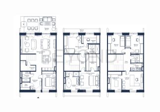 Трёхэтажный таунхаус площадью 236,5 кв. м отличается продуманной планировкой. Высокие потолки, большое количество окон и просторный холл формируют ощущение объёма и света. Кухня-столовая в американском формате плавно переходит в гостиную, создавая единое пространство для жизни и приёма гостей. На втором и третьем этажах расположены спальни и дополнительные комнаты, которые легко адаптировать под кабинет или приватную зону отдыха. Предусмотрены две кладовые, несколько гардеробных на каждом уровне и не менее трёх ванных комнат.