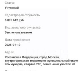 5 км от МКАД по Калужскому шоссе. Участок прямоугольной формы. Городская территория, не СНТ. Дороги - асфальт, чистит администрация. До метро Прокшино 1.3 км - 13 мин пешком. В пешей доступности вся инфраструктура: супермаркеты, рестораны, детские сады и школы. Коммуникации по границе участка: газ, электричество. По ГПЗУ разрешено строительство дома площадью до 450 м2 без учета подвала и мансарды. Взрослые дубы на участке. Юридически чистые документы. Скидка реальному покупателю при оперативном выходе на сделку.