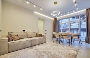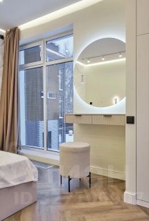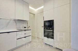 — кухня: с полноценной посудомоечной машиной, варочная панель на 4 конфорки, духовой шкаф, микроволновая печь, стиральная и сушильная машины — теплые полы