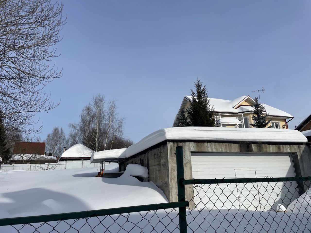 Отдельным бонусом летний домик, в целом приличный и для дачного варианта, мы для себя рассматривали как домик для строителей. Залита бетонная площадка под 4 автомобиля, гараж из железобетона зарегистрирован как двухэтажный, могу помочь поставить второй этаж каркасный есть проект.
