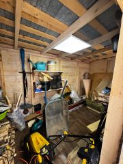 На территории участка расположена бытовка для хранения инвентаря. Подъезд к дому асфальтирован, а ключевая инфраструктура — торговые центры, магазины и сервисы — находится всего в пяти минутах езды на автомобиле, что идеально сочетает преимущества загородной жизни с городским удобством.