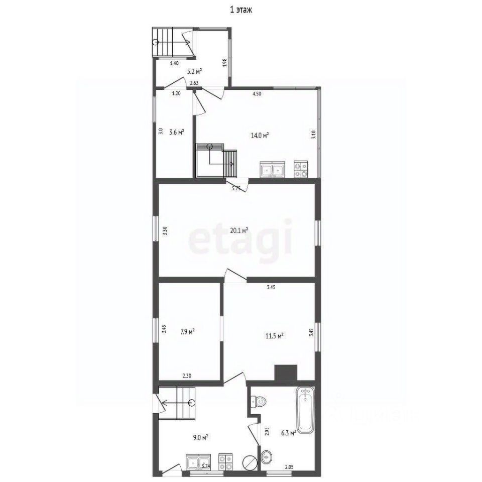 Дом расположен в развитом поселке с полной социальной инфраструктурой: школа и детский сад находятся в 15 минутах неспешной ходьбы, магазины и автобусная остановка — в 5 минутах.