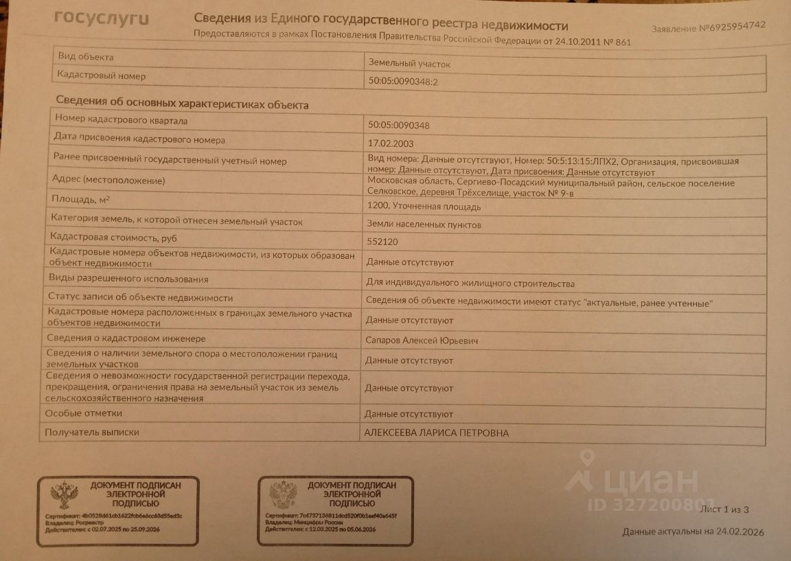 Статус участка