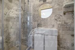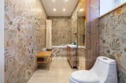 Мебель, оборудование: дом полностью укомплектован мебелью: на кухне установлен встроенный гарнитур со столешницей из искусственного камня и фасадами Cleaf TSSпанели, а также встроенная техника. В спальнях — спальные гарнитуры и шкафы. Интерьер дополнен люстрами, светильниками и шторами. В санузлах — сантехника европейских брендов, включая биде и гигиенический душ.
