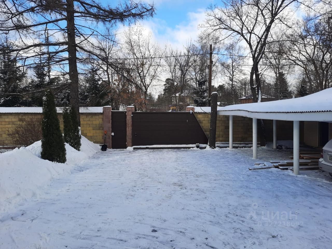 На участке хозяйственное помещение и навес на 3 автомобиля.