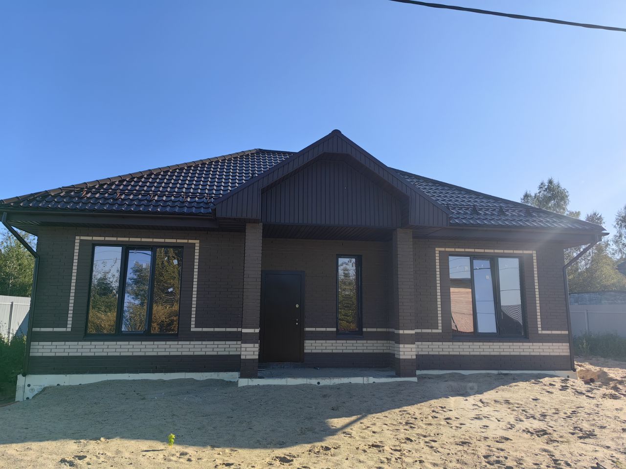 Дом на монолитной утепленной армированной плите с ростверком, стены из газосиликатного блока с утепление пеноплекс, керамический облицовочный кирпич "Керма", четырёх скатная кровля из металлочерепицы,оконный профиль 70мм, двойной стеклопакет, стекла с бронзовой тонировкой, энергосберегающие. Утеплённая бронированная дверь с двумя замками. Огорожен забором. Выполнен ввод трассы электричества и водоснабжения, произведена разводка канализации .Электричество 15 кВт., септик глубокой очистки , скважина, газ.