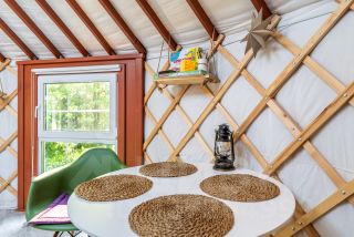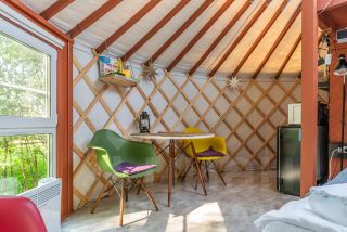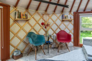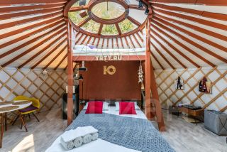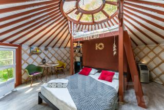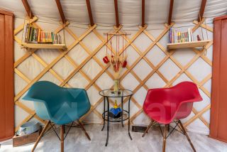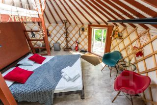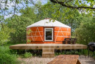 Материалы: Юрта построена по новой технологии с использованием современных материалов. Состоит из нескольких слоев, имеет приточную и вытяжную вентиляцию. Утепление и отопление позволяют использовать ее круглогодично. Дополнительного ремонта и вложений не требует. Фундамент - свайный. Пол ламинат. Экологичная деревянная доска на стенах. Окна - стеклопакеты. Терраса - устойчивая террасная доска.