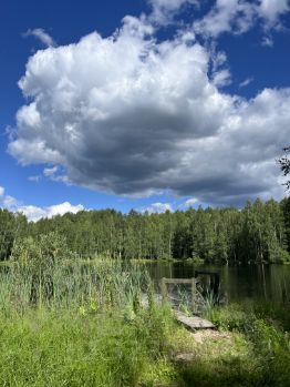 лесное озеро с понтонным причалом, к участку имеется собственный подъезд (дорога), электричество от подстанции на 160 кВт., скважина, колодец с чистейшей водой, котельная, 2 деревянных дома из сруба со всеми удобствами по 135 квадратных метров каждый