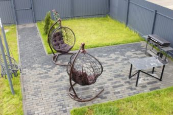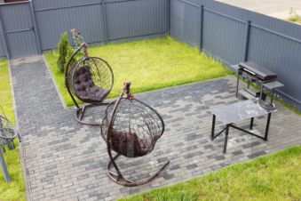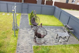 Брусчатка под заезд автомобиля и пешеходная дорожка, мангальная зона.