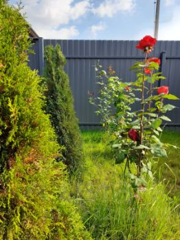 На участке своя скважина с питьевой водой (81 метр). Удачная скважина, голубого цвета вода без запаха.