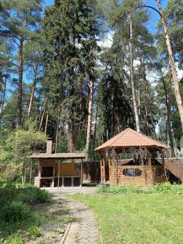 Удобства на Участке: Просторная баня 32 кв.м, двухэтажный гараж 45 кв.м. на 2 автомобиля с жилой комнатой наверху, беседка с мангальной зоной и вольер с хоз.блоком - все для вашего комфортного отдыха и быта.