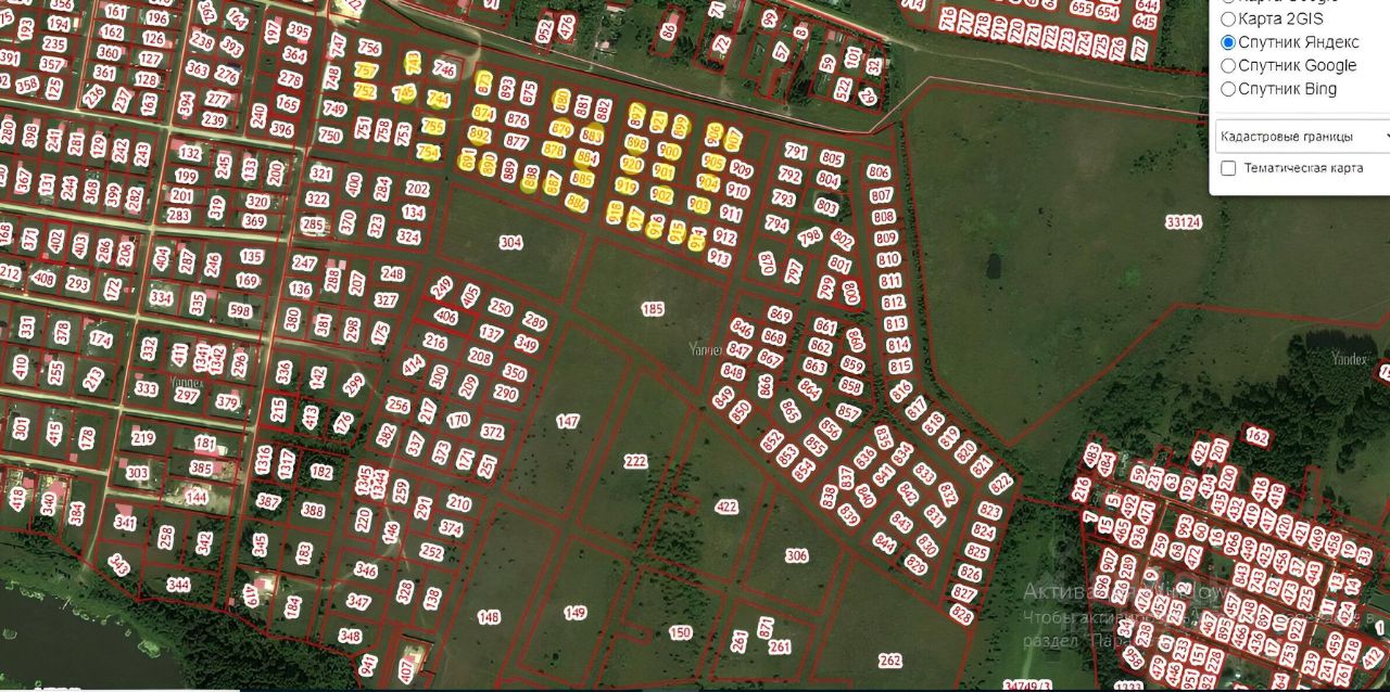 40 земельных участков площадью от 9 до 15 соток (помечены на скриншоте).