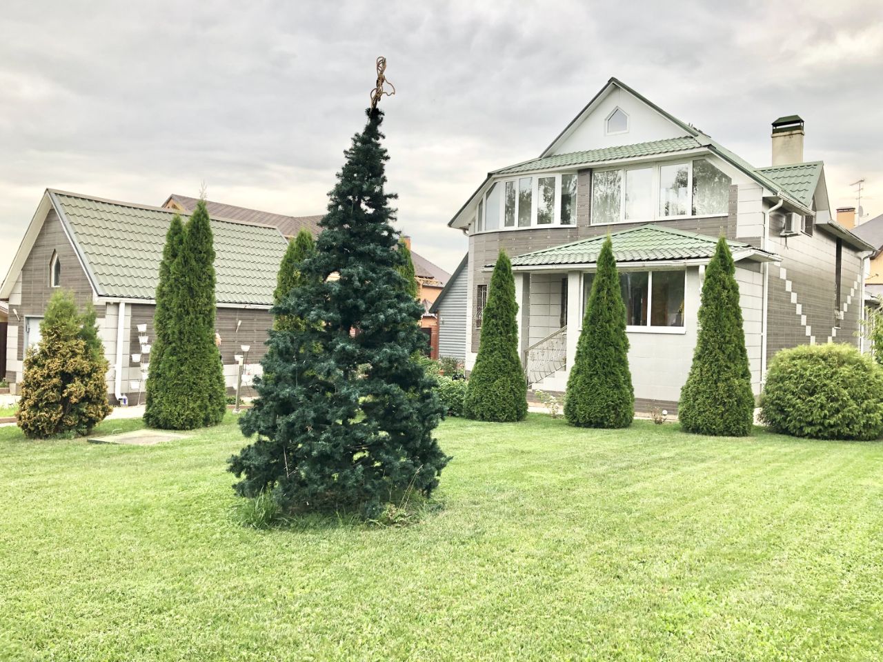 - Площадь дома 265м2, также на участке расположены пристройки, а именно - Баня 60м2( 2 этажа), небольшой гостевой домик, беседка и гараж.