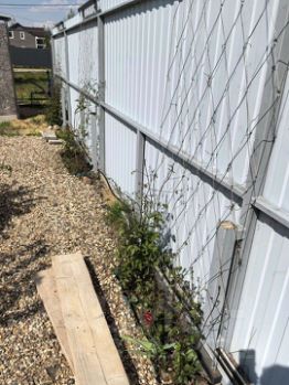 Участок с двух сторон обнесен забором, с третьей все сделано только прикрепить профлист.