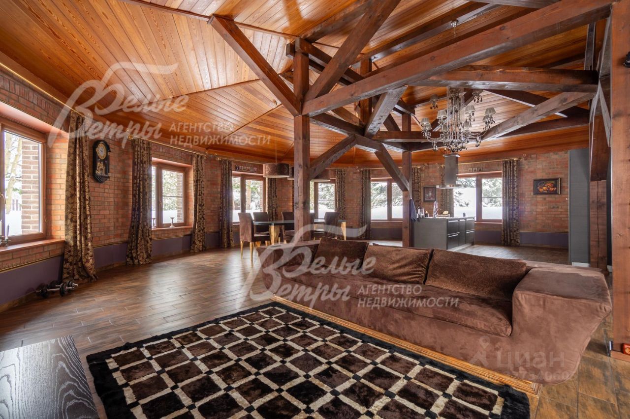 Код объекта в БД Агентства: 737-801. Пучково-2 КП. Кирпичный дом в классическом стиле с элементами замковой архитектуры - с дорогостоящей итальянской мебелью и техникой премиальных брендов. В доме - уникальная гостинаякухнястоловая круглой формы площадью 95 кв.м с высокими потолками до 4,2 м, окнами с обзором на 200 и дровяным камином. В планировке - четыре спальни, две из которых расположены на первом этаже, кинотеатр, сауна, игровая комната. Цокольный и мансардный этажи - жилые. Дизайнерский интерьер с элементами стиля лофт украшают парящая лестница, второй камин в холле, детали из натурального мрамора. Дом стоит на живописном участке с хвойными деревьями, кустарниками, клумбами, газоном, прогулочными дорожками и отдельностоящей русской баней. Участок расположен в камерном строго охраняемом коттеджном посёлке с центральными коммуникациями.