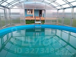На участке так же имеется крытый бассейн, батут, качели, теплица и съестные кустарники.